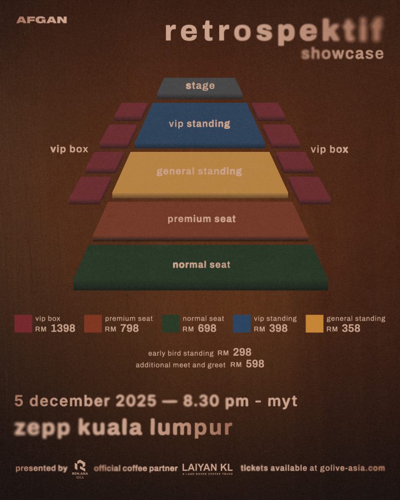 Tiket Afgan Retrospektif Showcase telah mula dijual sejak 1 Oktober lalu di laman rasmi GoLive Asia.