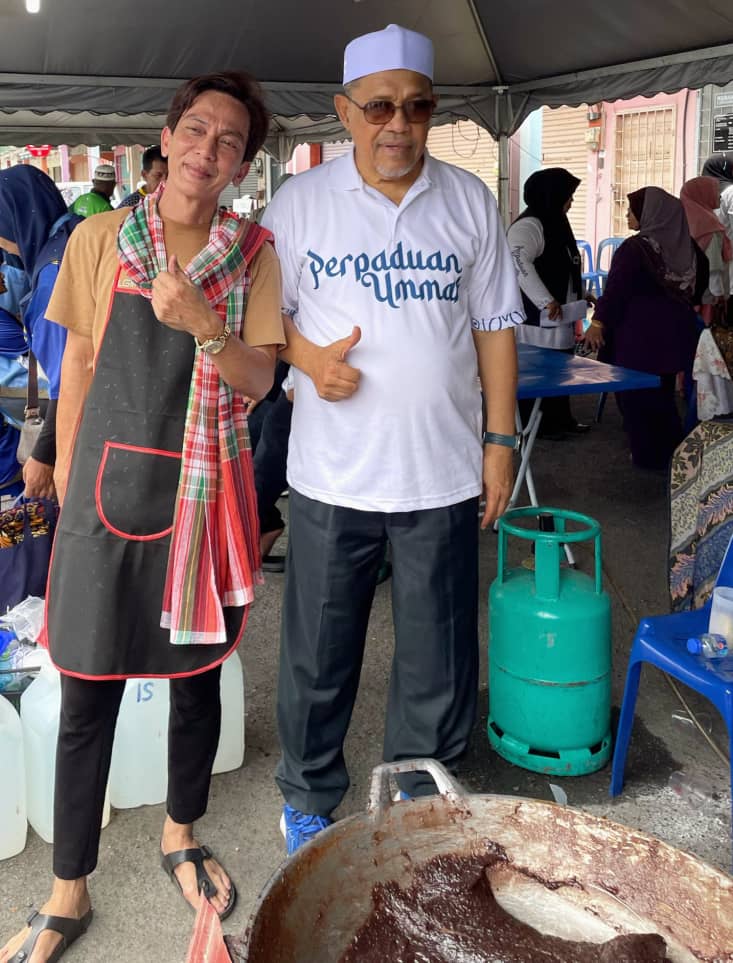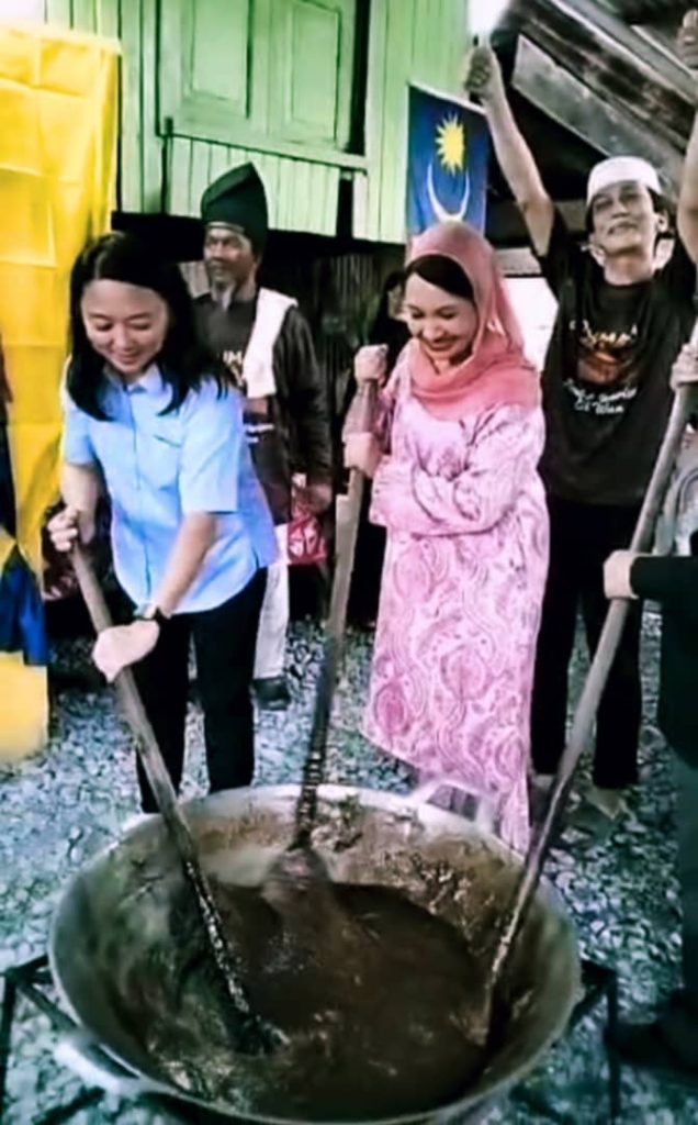 Menteri Belia dan Sukan Malaysia, YB Puan Hannah Yeoh Tseow Suan (kiri) turut mengambil bahagian mengacau dodol dalam satu program.