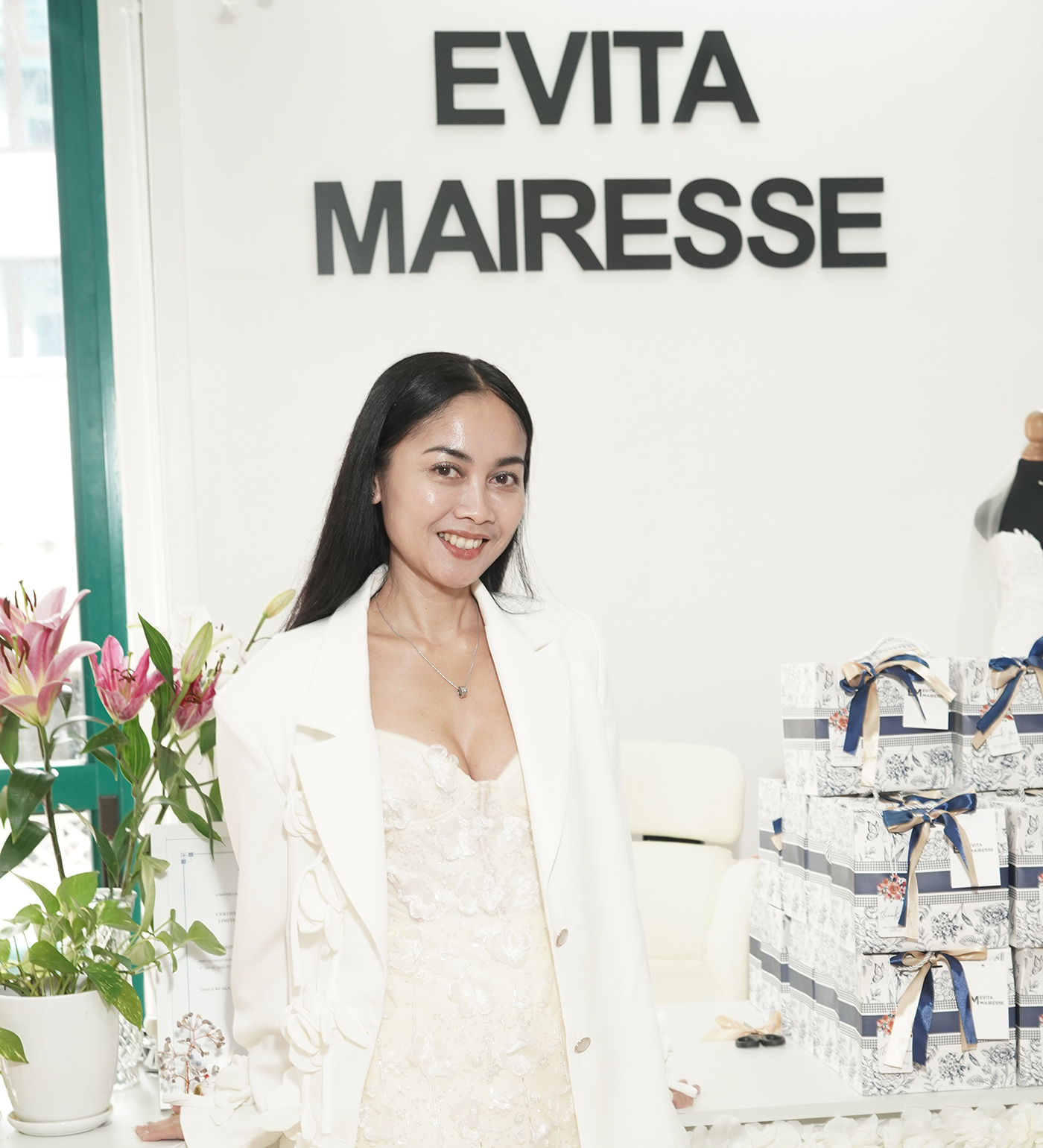 Evita Mairesse, yang terkenal dengan rekaan busana pentas yang anggun dan glamor, memilih konsep operasi melalui janji temu untuk memastikan setiap pelanggan menerima layanan premium dan konsultasi yang mendalam.