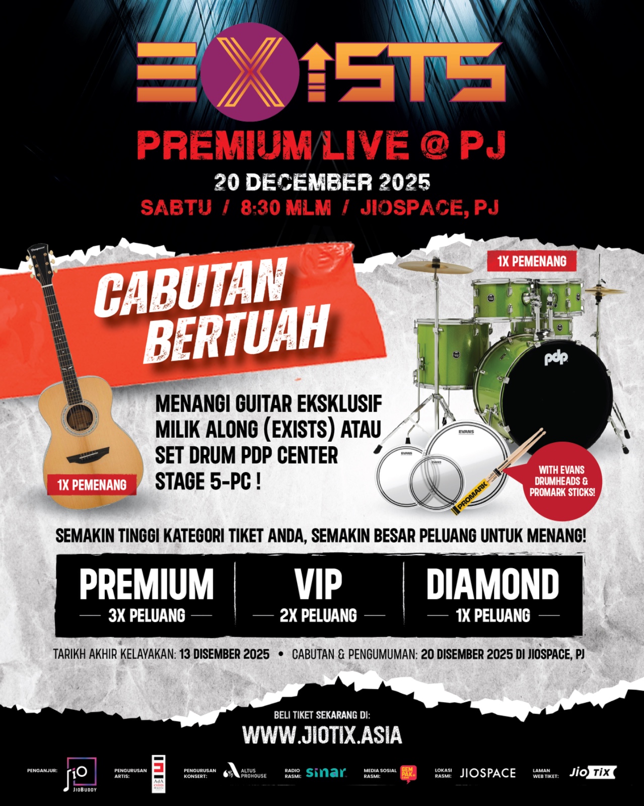 EXISTS Tawar Pengalaman “PREMIUM” Dec Ini, Hadiah Istimewa Gitar Along & Set Dram PDP