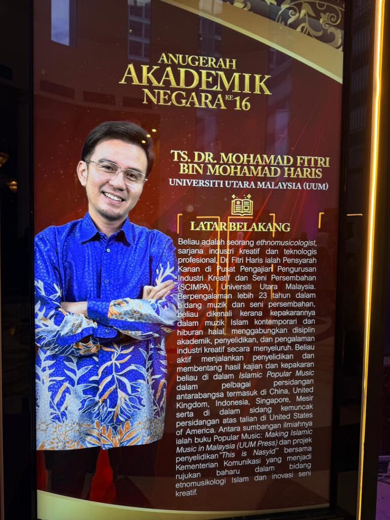 Dr. Fitri, yang kini berkhidmat sebagai Pensyarah Kanan dan Felo Inovasi di School of Creative Industry Management & Performing Arts (SCIMPA), UUM, dikenali sebagai sarjana yang berjaya mempertemukan dunia seni dan akademik dalam kerangka nilai, etika dan pendidikan.