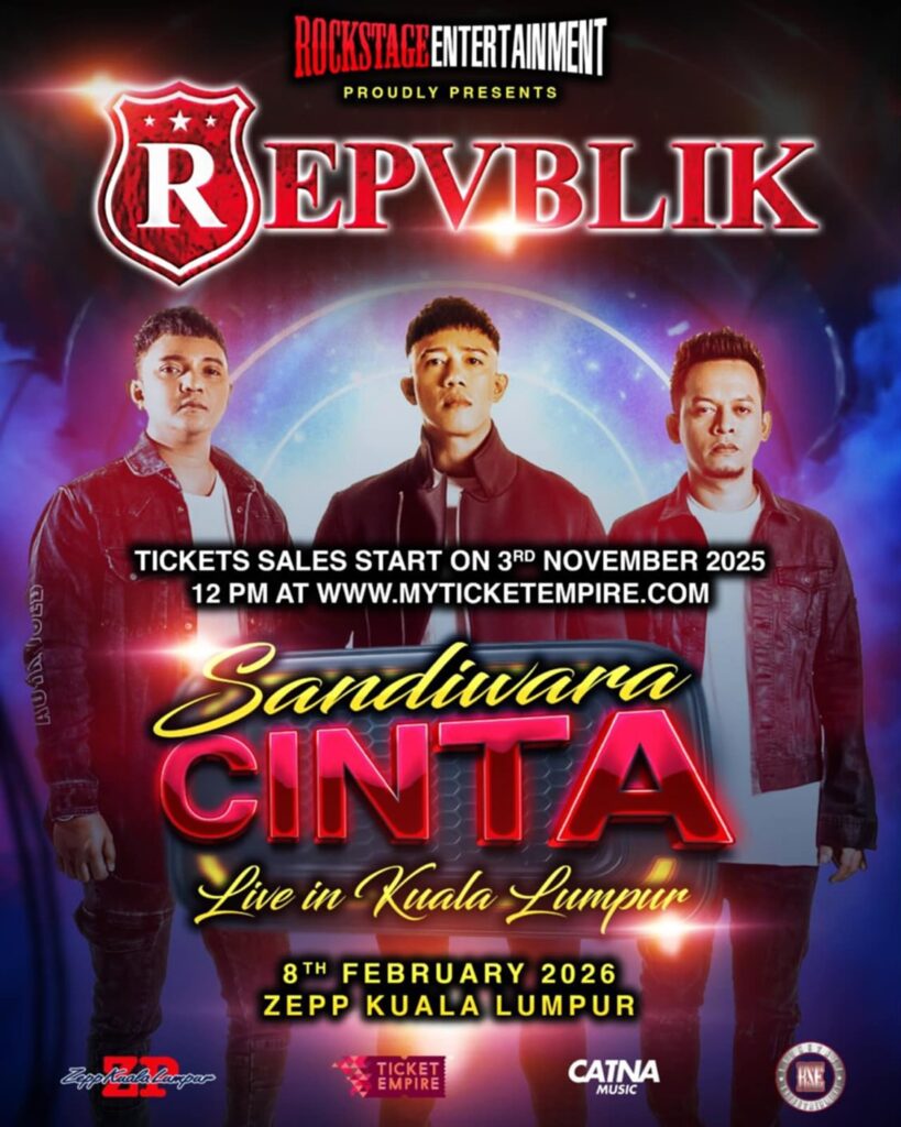 Kumpulan pop-rock terkenal dari Indonesia, Repvblik, bakal kembali menggegarkan pentas Malaysia menerusi konsert istimewa “Sandiwara Cinta – Repvblik Live in Kuala Lumpur” yang dijadual berlangsung pada 8 Februari 2026 di Zepp Kuala Lumpur.