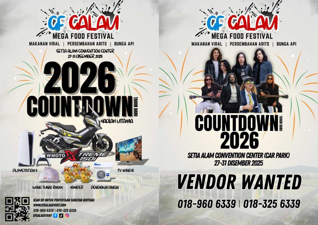 GF GALAU Food Festival akan dibuka setiap hari dari 10 pagi hingga 12 tengah malam, dengan malam penutup pada 31 Disember dijangka menjadi kemuncak sambutan tahun baharu di Lembah Klang.