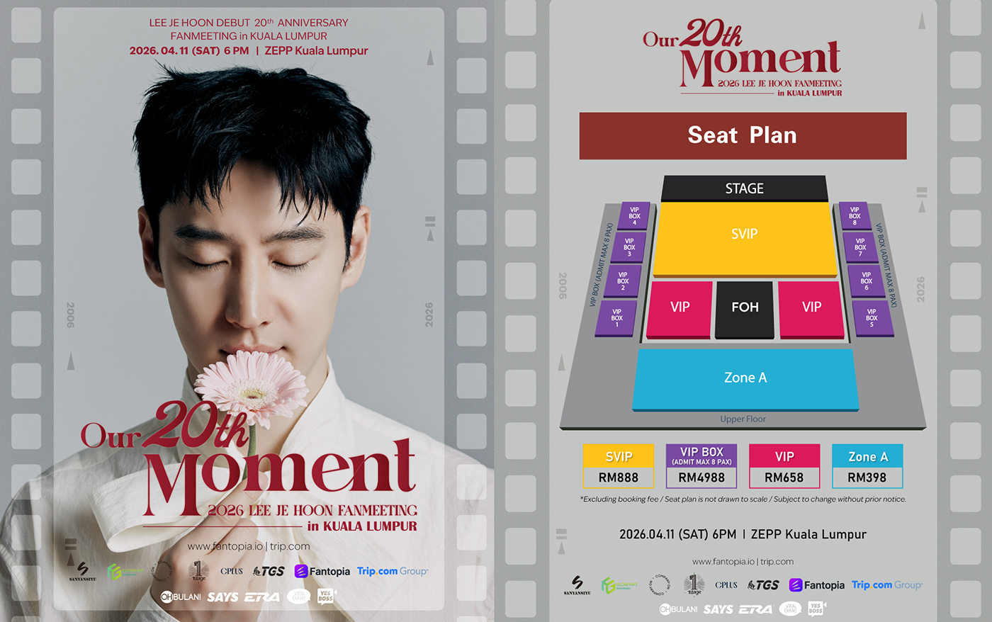 Bagi yang tidak mahu ketinggalan, tiket akan mula dijual pada 25 Februari 2026 (Rabu) bermula jam 12 tengah hari menerusi platform fantopia.io, my.trip.com dan www.ctrip.com.