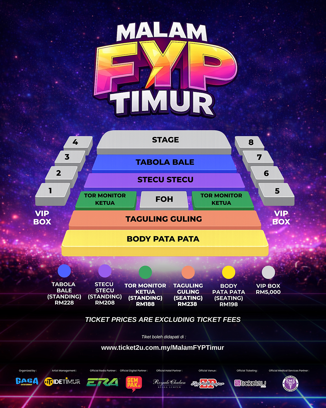 Peminat boleh mendapatkan tiket menerusi laman web rasmi Ticket2U di www.ticket2u.com.my/MalamFYPTimur.