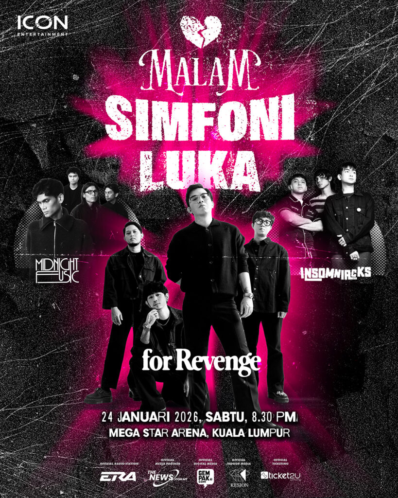 Peminat muzik alternatif dan pop moden bakal dihidangkan dengan malam penuh emosi apabila tiga kumpulan berpengaruh, For Revenge, Insomniacks dan Midnight Fusic, disatukan dalam konsert istimewa bertajuk “Malam Simfoni Luka” yang akan berlangsung pada 24 Januari 2026 di Megastar Arena, Kuala Lumpur, bermula jam 8 malam.