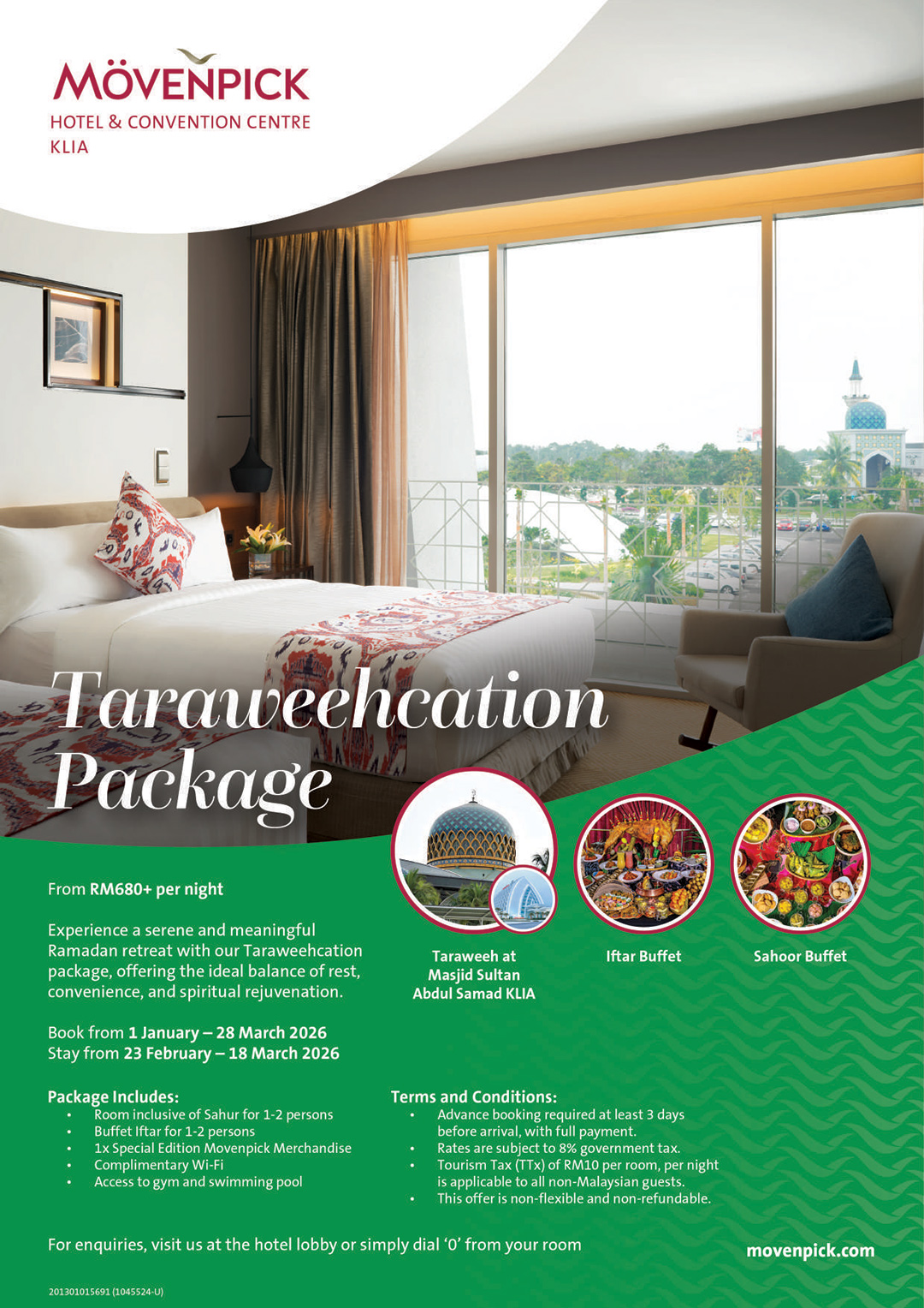 Selain bufet, hotel turut memperkenalkan Pakej Taraweehcation yang direka khas sebagai ruang istirahat yang tenang sepanjang bulan Ramadan.