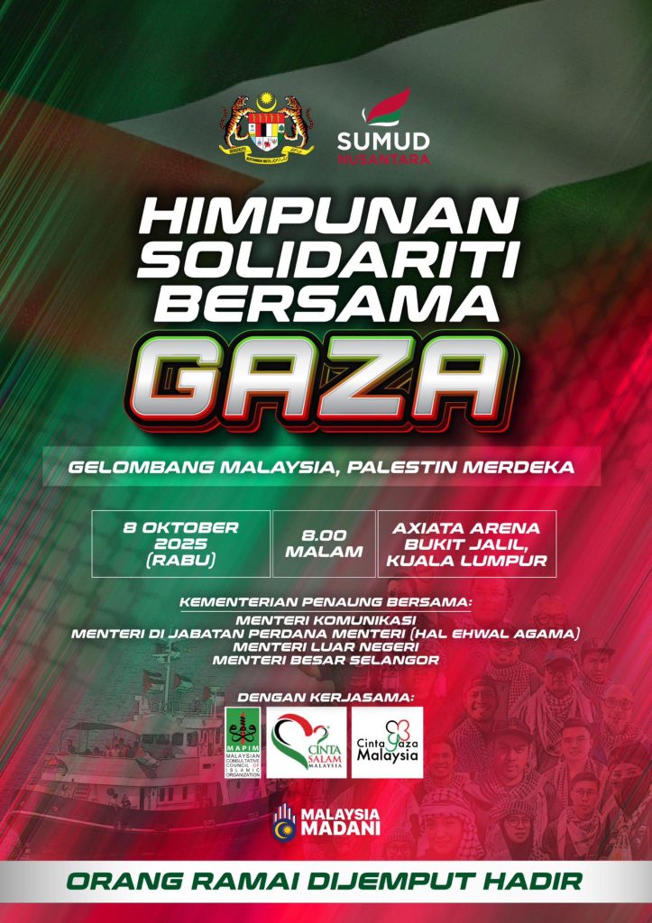 Dalam perkembangan berkaitan, satu Himpunan Solidariti Bersama Gaza akan diadakan di Axiata Arena, Bukit Jalil pada jam 8 malam esok bagi menyuarakan solidariti terhadap perjuangan rakyat Palestin.