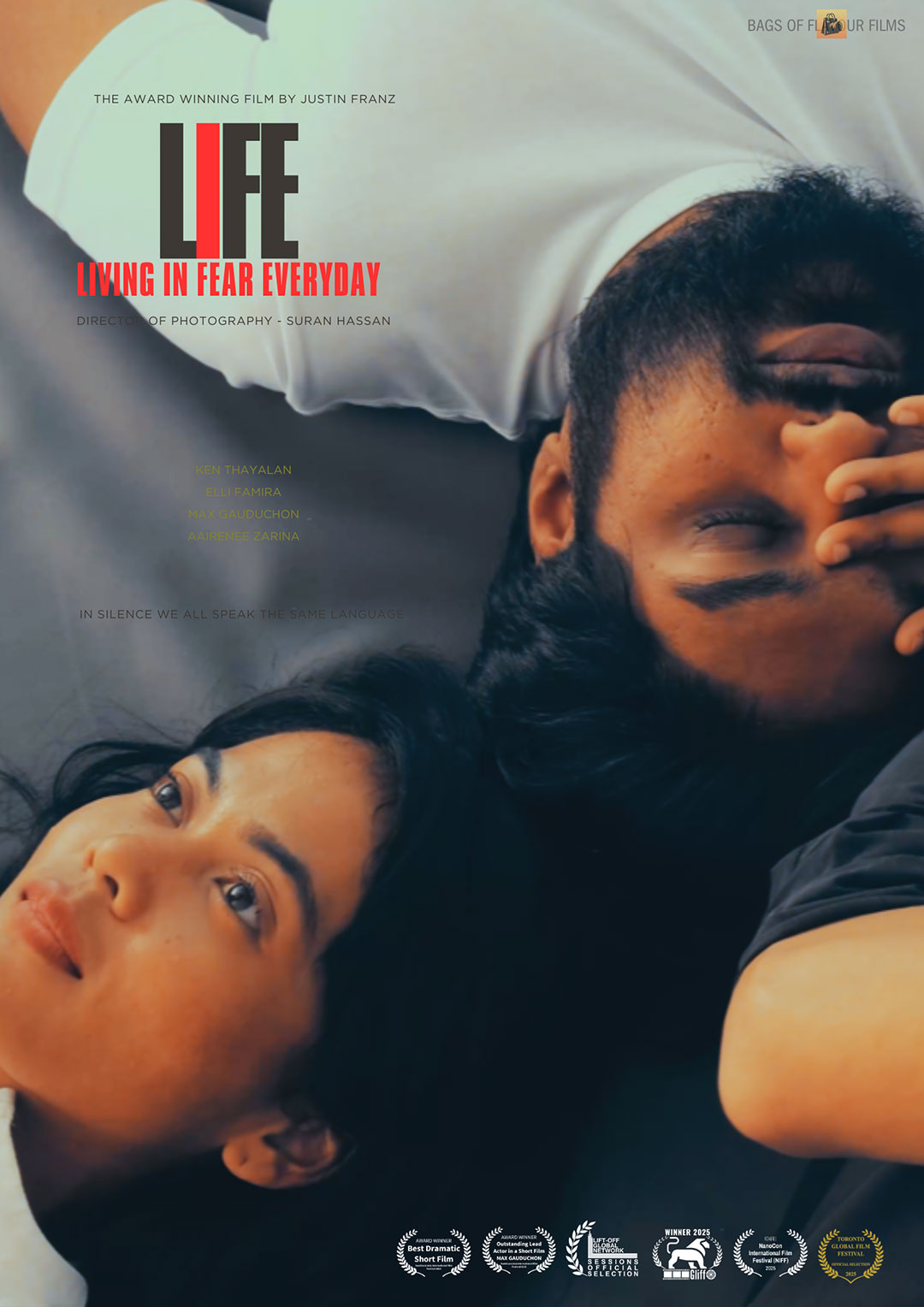 Filem pendek bisu moden bertajuk LIFE – Living In Fear Everyday, arahan pengarah muda berbakat, Justin Franz, membuktikan bahawa kekangan kewangan bukan penghalang untuk melakar kejayaan di pentas antarabangsa.