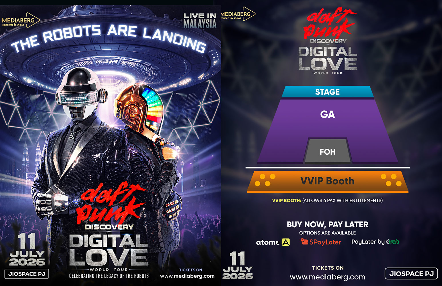 Demam muzik elektronik bakal melanda ibu kota apabila siri jelajah dunia yang dinanti-nantikan, Daft Punk Discovery – Digital Love World Tour Live in Malaysia, disahkan akan menggegarkan JioSpace, Petaling Jaya pada 11 Julai depan.