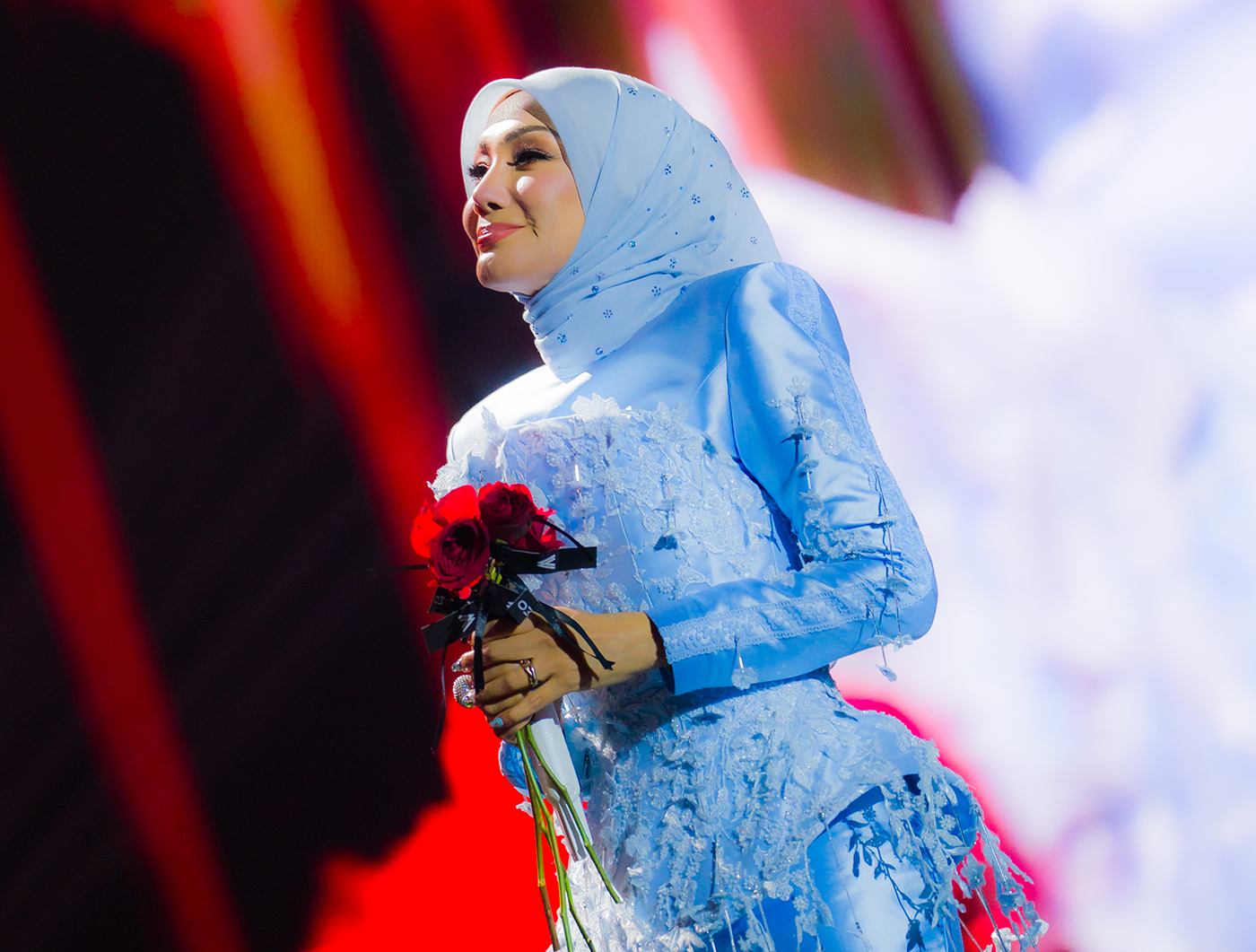 Tidak ketinggalan, kehadiran Primadona Erra Fazira di atas pentas nyata mencuri tumpuan dengan imej penuh elegan. Beliau bukan sahaja menghidupkan kembali karakter ‘Wati’ yang cukup ikonik, malah membuktikan keupayaan vokalnya masih di tahap terbaik menerusi lagu-lagu malar segar seperti Hanya Di Mata, Cinta Abadi, dan Pasrah.