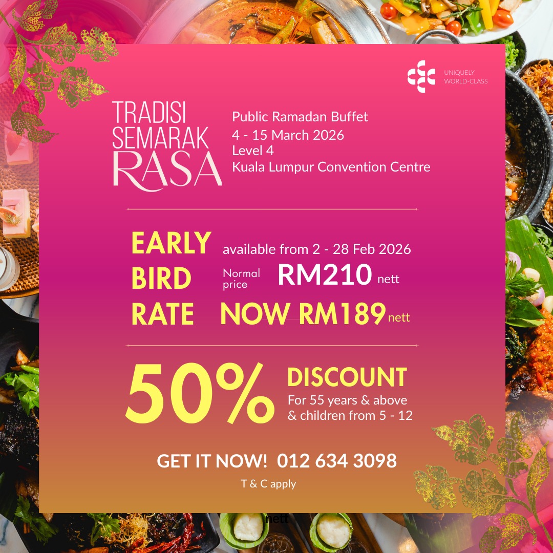 Pusat Konvensyen Kuala Lumpur (KLCC) kembali menyemarakkan bulan mulia dengan penganjuran ‘Tradisi Semarak Rasa Ramadan’, menjanjikan pengalaman berbuka puasa yang eksklusif dengan paduan hidangan warisan autentik dan kelestarian makanan yang lebih bermakna.